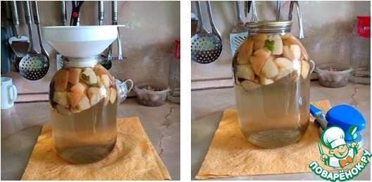 вопрос по рецептуСироп данной концентрации не обладает консервирующими свойствами, поэтому сироп приходится дополнительно сливать, кипятить и снова заливать яблоки.