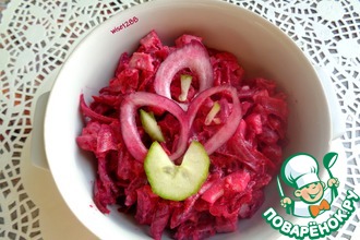 Сделать заправку, состоящую из оливкового масла, лимонного сока, жгучего красного перца и соли. Полить салат, тщательно перемешав.