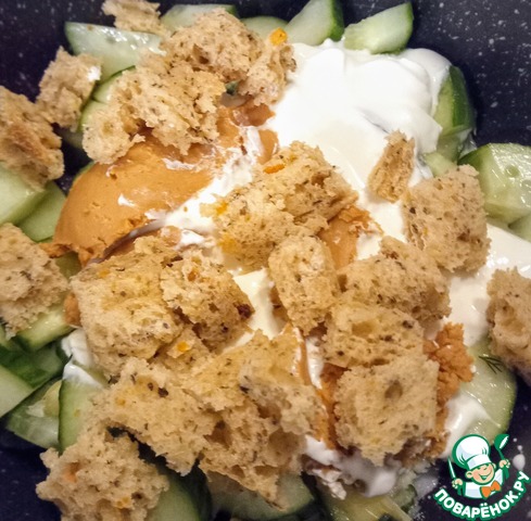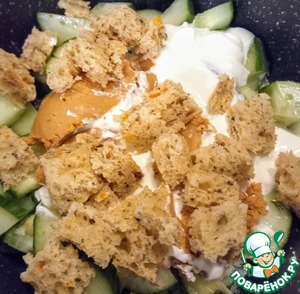 перец чили, йогурт, соль, чеснок, имбирь, арахисовое масло (1,5 столовых ложки) кусочки хлеба пробить блендером. -