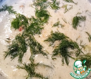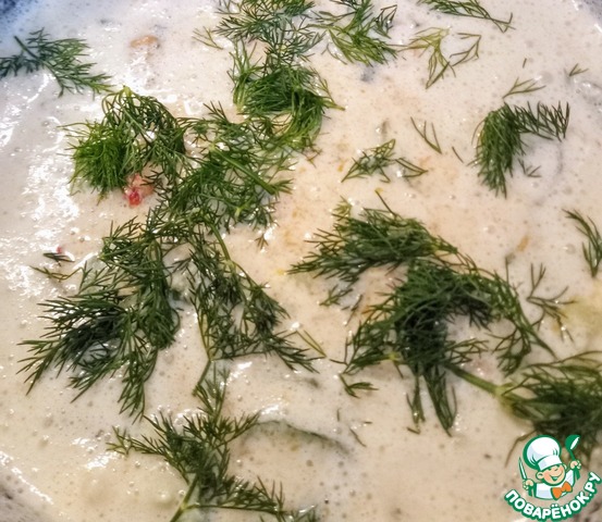 Соединить содержимое блендера со смесью пункт 1. Это даёт блюду неповторимую текстуру. Обильно посыпать свежим укропом. Приятного аппетита!