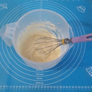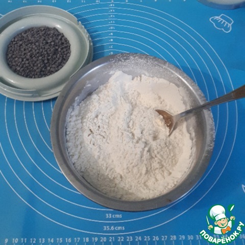 Добавить вторую часть мучной смеси. Если тесто получается жидкое, то добавьте еще немного муки, скатайте тесто в шар.