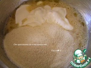 Всыпьте муку, смешанную с разрыхлителем и солью.