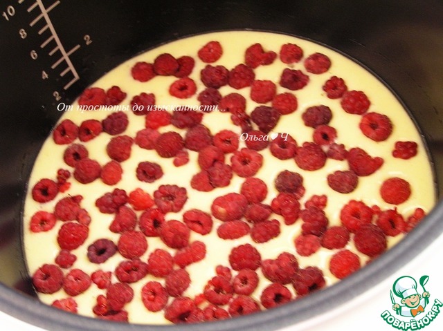 Нежная запеканка с малиной, приготовленная в мультиварке. Вместо малины можно использовать кусочки фруктов или другие ягоды по сезону. Попробуйте!