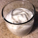 В чашу блендера поместить гречневую кашу, творог, ряженку и кусочки банана.