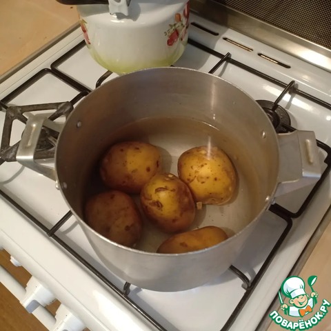 Картофель хорошо вымыть и отварить в кожуре до готовности.