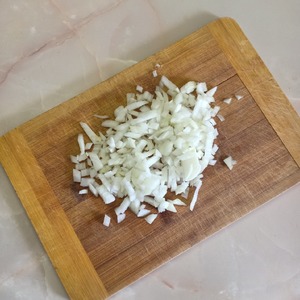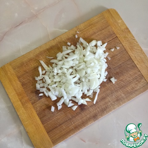 Лук очистить и нарезать мелкими кубиками.
