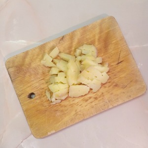 Картофель также нарезать мелкими кубиками.