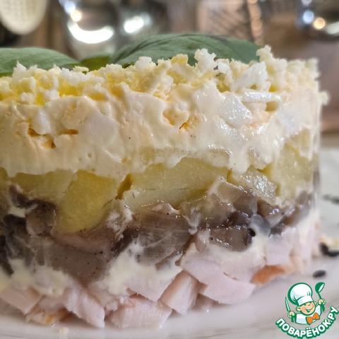 1 слой - копченая курица,