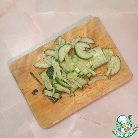 Ну очень простой и гармоничный салат из кальмаров на быструю руку.