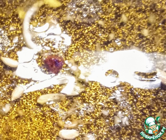 На той же сковороде сделать соус, смешав чеснок, мед, лимонный сок и 1 столовую ложку растительного масла. |