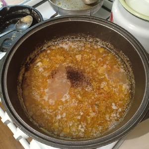 За 10-15мин до готовности положить в суп соль, перец и муку, обжаренную в небольшом количестве сливочного масла.