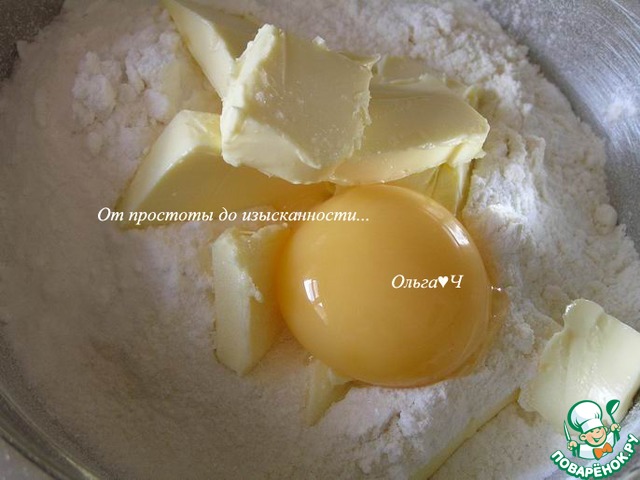Приготовьте тесто. Соедините муку, сахарную пудру, размягченное сливочное масло, ванилин, щепотку соли и желток.