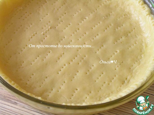 Тесто распределите руками в форме (у меня диаметром 26 см), сделайте небольшие бортики (около 2,5-3 см), проколите вилкой, уберите в морозилку на 30 минут.