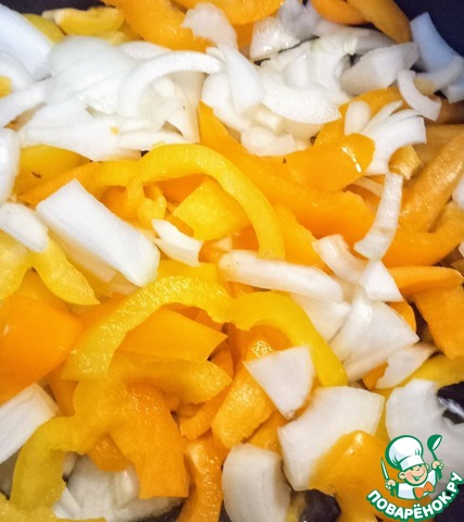 - Перец болгарский (очищенный и нарезанный на кусочки в 1см толщиной) — 2 шт