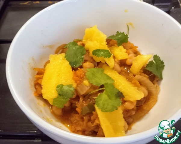 Достаточно легкое для желудка блюдо и необычно с манго, фасолью и специями.