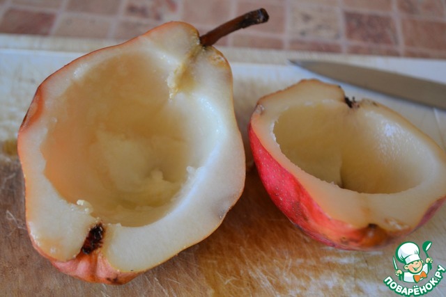Грушу промыть, разрезать пополам. Ложкой аккуратно вынуть мякоть.