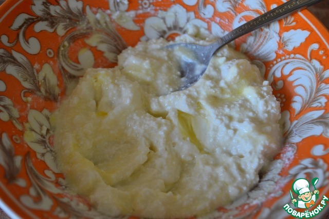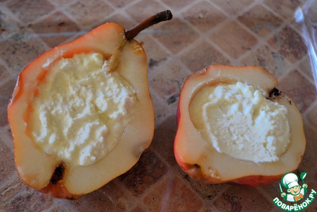 Начинить грушу творожной массой. Запечь в духовке при 180° в течение 15 минут.