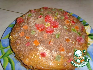 • Застелить форму бумагой для выпечки.выпекать коржи ,в предворительно разогретой духовке,при темп. ок. 180 град.,готовность проверять деревянной палочкой.