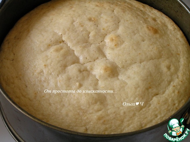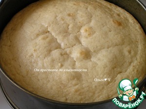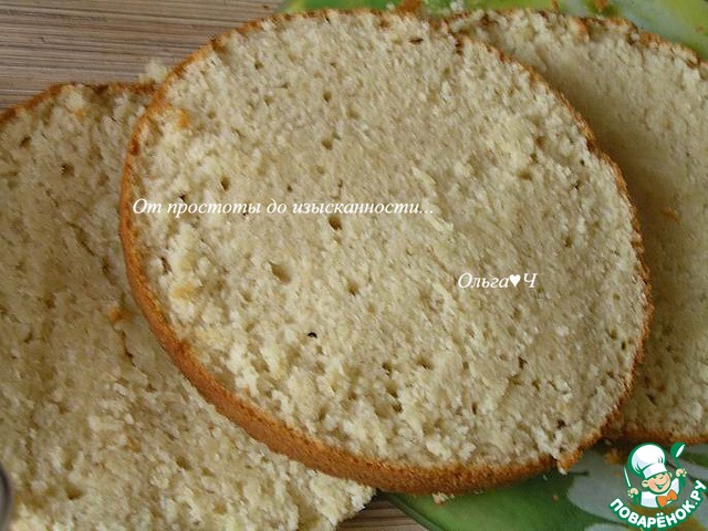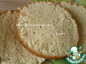 Готовый бисквит остудите, разрежьте на 2-3 коржа (у меня 3).