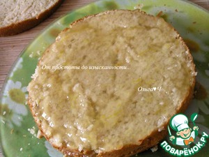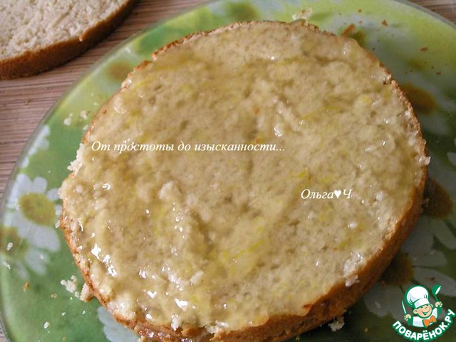Коржи бисквита промажьте остывшим курдом, укладывая друг на друга.