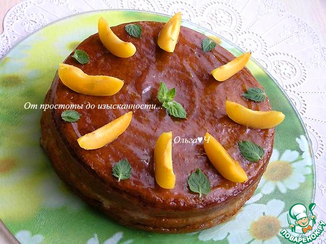 Затем обмажьте курдом весь торт со всех сторон. Уберите в холодильник на 1-2 часа. Перед подачей украсьте дольками абрикосов и мятой.