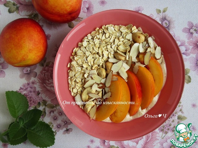 Смузи-боул - смузи в чашке; жидкое блюдо, которое подают в широкой пиале и украшают сверху кусочками фруктов, орехами, гранолой, цукатами. Предлагаю вам, Поварята, приготовить один из таких боулов с добавлением персиков и сухофруктов!