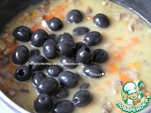 Добавьте маслины без косточек (для удобства я вынула курицу).