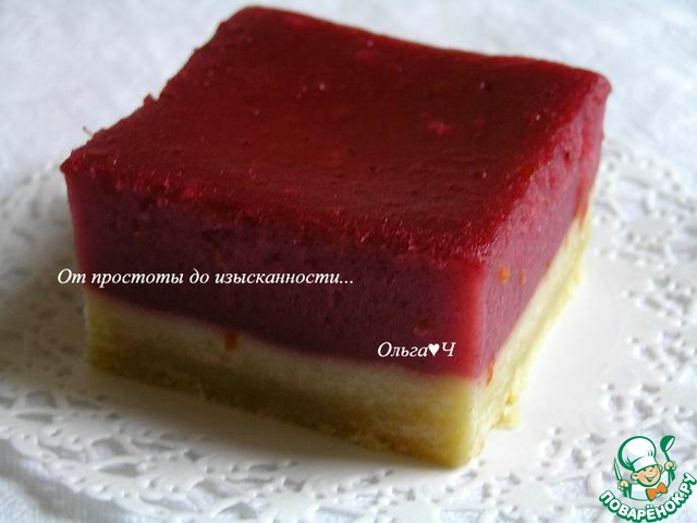 Яркое и насыщенное пирожное как по виду так и по вкусу. В основе песочное тесто, а сверху нежная малиново-лимонная начинка, похожая на пудинг. Попробуйте!