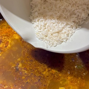 Добавил рис и не варил, а продолжал томить еще примерно минут двадцать.