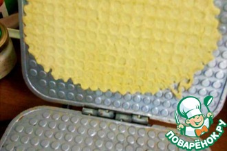 Кладём не полную столовую ложку теста и закрываем. Даём пропечься минуты 3. (Время зависит от мощности вашей вафельницы)