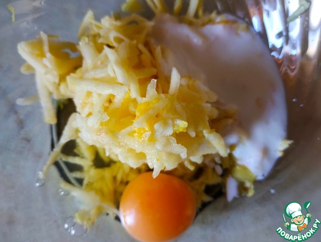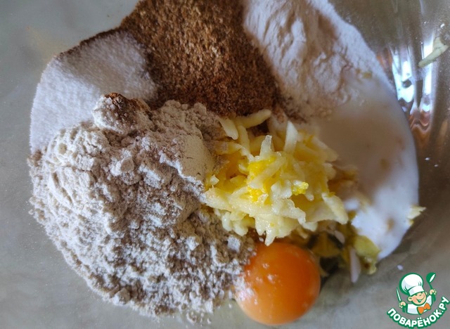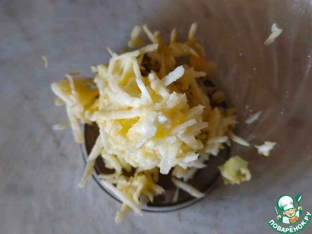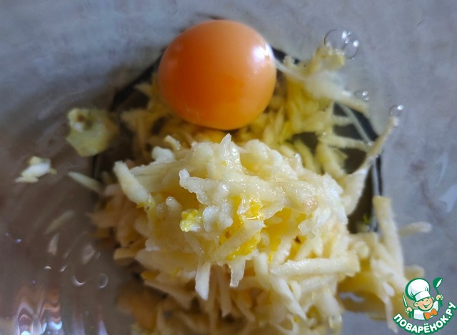 Моем и очищаем яблоко от сердцевины с семечками. Натираем на крупной тёрке.