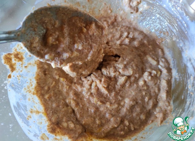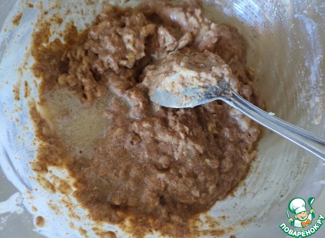 Вот такое тесто получается. Если у вас получилось слишком густое, можно добавить ещё немного кефира