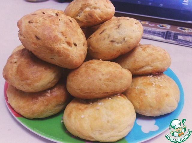 Вот совет: не посыпайте их тмином, кунжутом и так далее, вся посыпка опадает. Лучше обмакните заготовки в посыпку, так она будет держаться. Конечно, если тесто достаточно плотное для такого приёма.