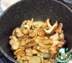 В казане разогреть оливковое масло на среднем огне и жарить лук до мягкости минут 5. Увеличить огонь и готовить грибы шиитаке 3-4 минуты до золотистой корочки.