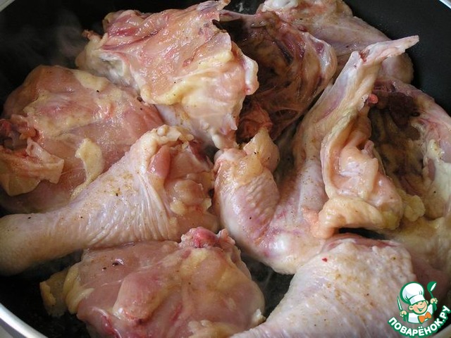 Курицу посолите, поперчите, обжарьте на растительном масле.