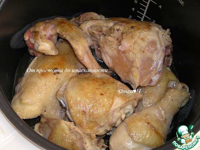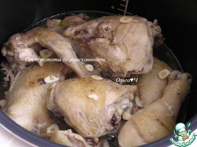 Влейте 250-300 мл воды, добавьте нарезанный чеснок, готовьте в режиме "Тушение" 40 минут.