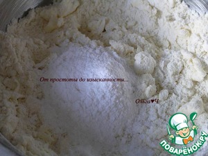 Порубите или разотрите в крошку, всыпьте сахарную пудру и соль, перемешайте.