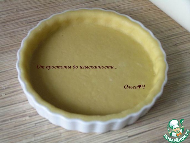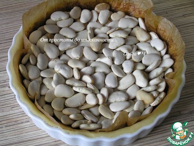 Затем запеките "вслепую" (положите бумагу для выпечки на тесто и всыпьте фасоль, например) при 190*С 15-20 минут.