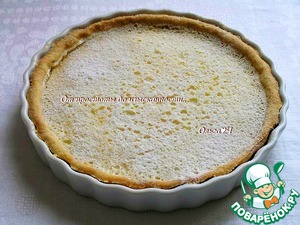Перелейте начинку на испеченный корж. Снизьте температуру до 120*С и выпекайте пирог 25-35 минут, пока начинка не схватится в серединке.
