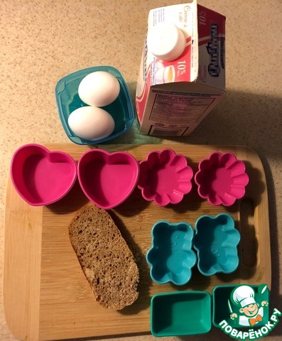 Взбиваем венчиком яйца со сливками и перемешиваем с хлебом. -