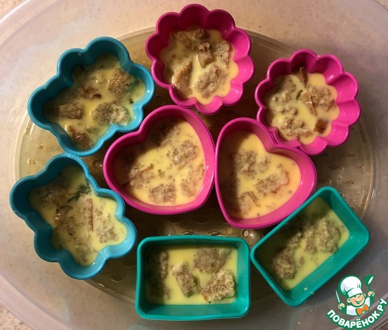 Распределяем по маленьким силиконовым формочкам и готовим на пару 10-15 минут в зависимости от размера формочек.