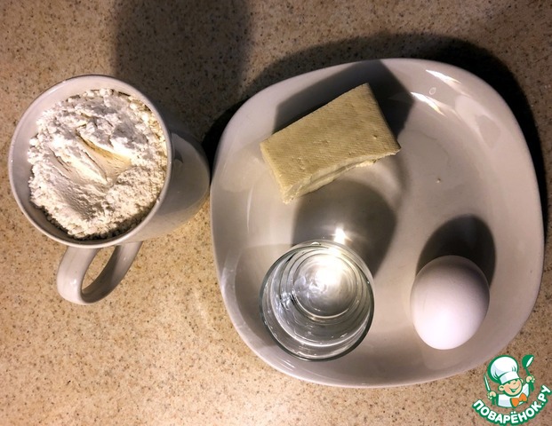 - Мука пшеничная / Мука (1 стакан в тесто и еще примерно 0.3-0.5 стакана на раскатывание) — 1 стак.