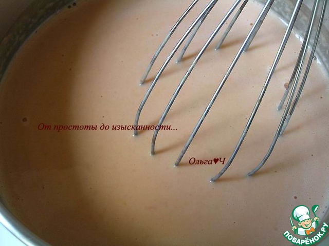 Постоянно помешивая венчиком, прогрейте до карамельного цвета.