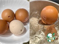А если острый нож соскочит с округлой поверхности яйца. Как-то не хочется впопыхах еще и пальцы проколоть Проще взять яйца комнатной температуры, а не из холодильника - и проблем с трещинами не будет