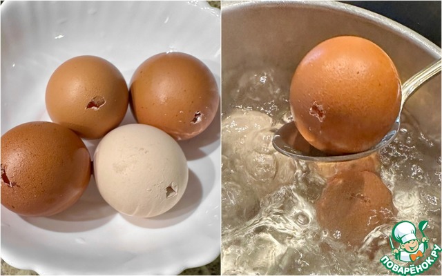 Яйца надо резко охладить и аккуратно очистить от скорлупы. Хотите покруче, чем «в мешочке», чтобы получилось? Поварите шесть минут и всех делов.