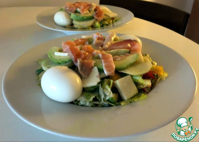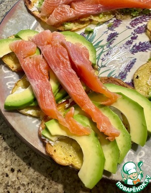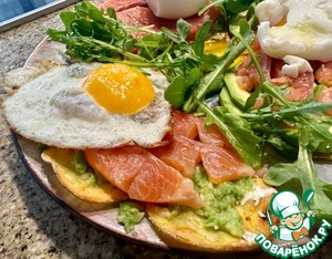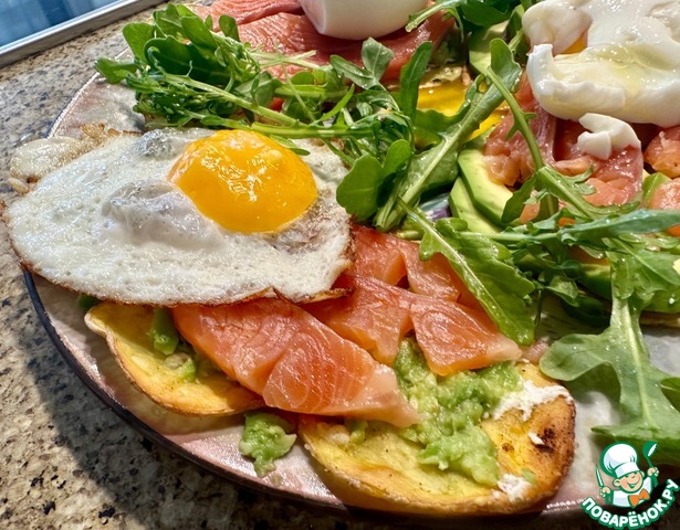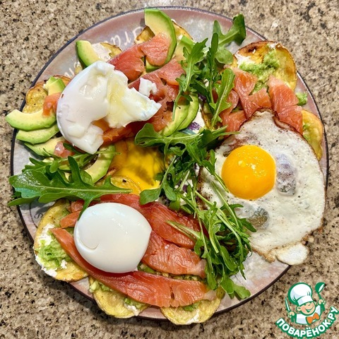 Рецепт «Картофельная яичница с авокадо и лососем»: