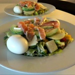В-третьих, ломтики солёной рыбы легли. У меня форель была, но, в принципе, «к месту» будет любая, какую любит потребляющий. А лучше всего, конечно, сёмга. Это без вариантов.