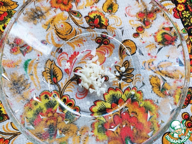 Мелко нарезать или пропустить через пресс чеснок.