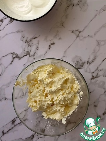 В другой чашке пробиваем погружным блендером творог, сметану, ванильный сахар и кукурузный крахмал.