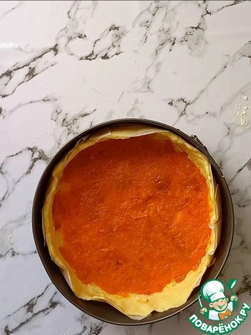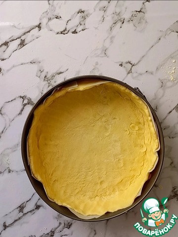 Раскатываем тесто. Перекладываем в форму и делаем бортики. (Размер формы - 24 см)